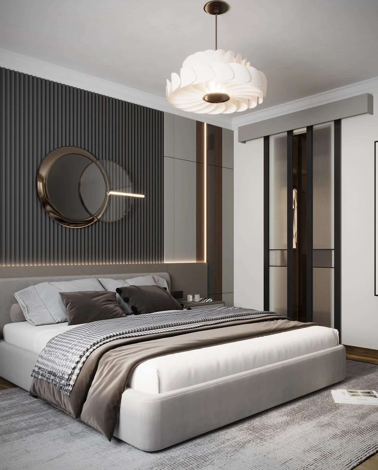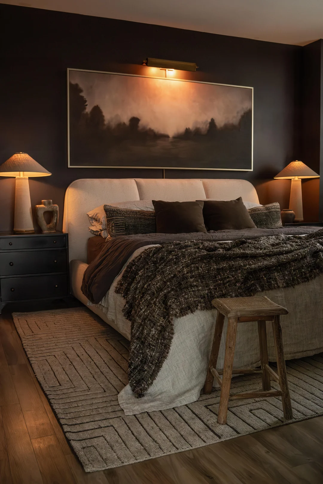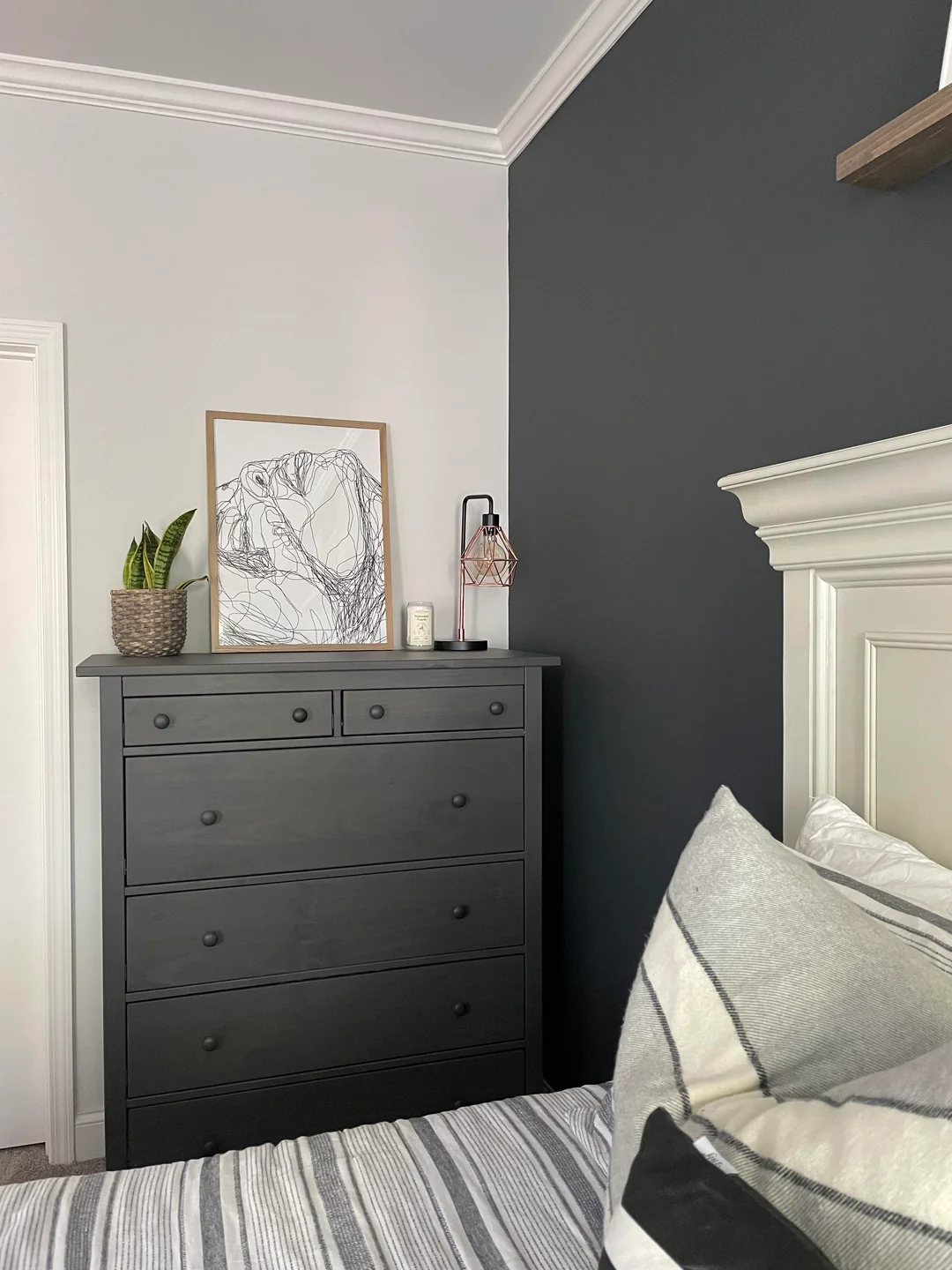 If you want drama without overwhelming the space, add a charcoal accent wall behind your bed.
