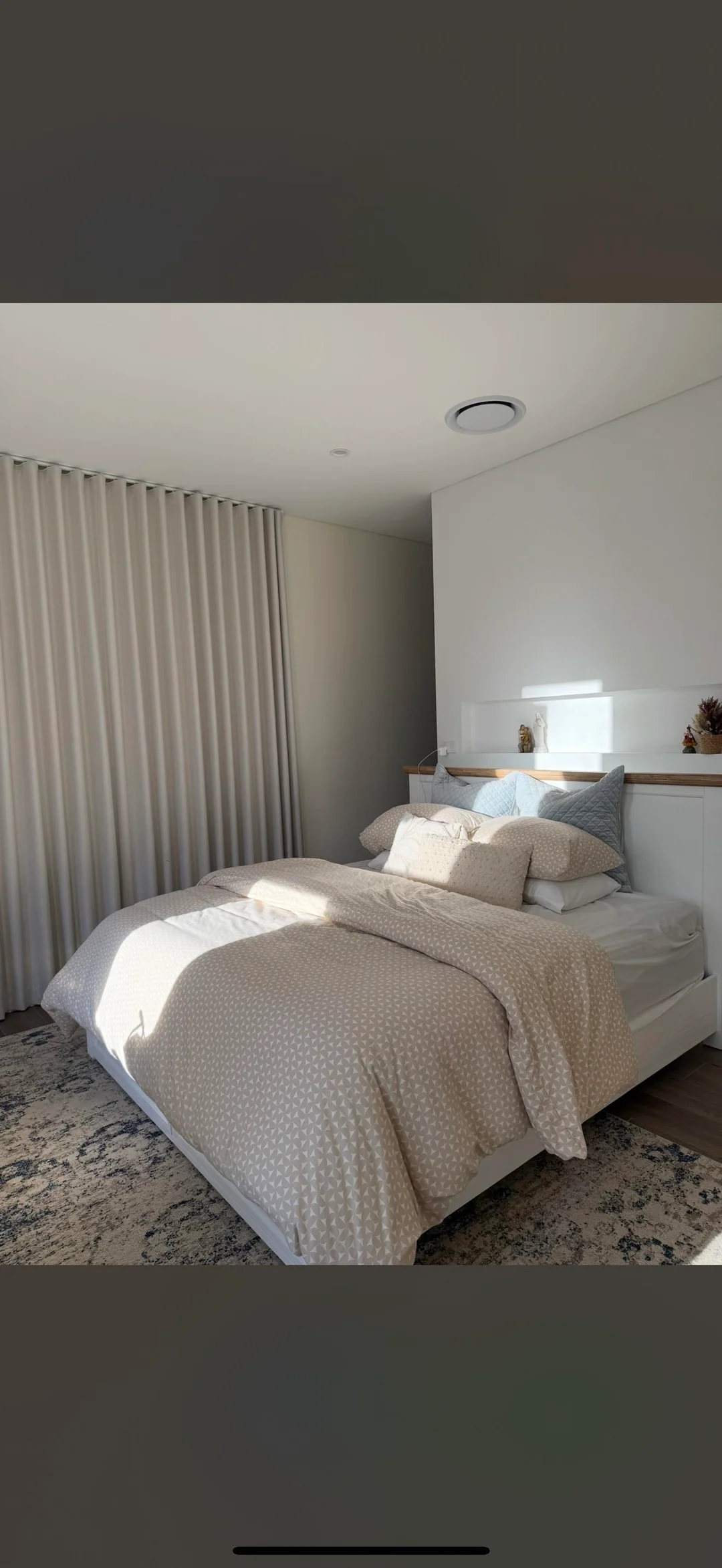 This style works perfectly in small bedrooms. Clean, simple, and calming.
